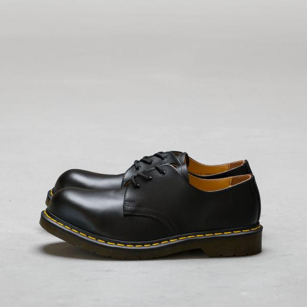 ドクターマーチンと他のドレスシューズを比べてみても、ドクターマーチンの方は黄色いステッチやソールの厚みなどでカジュアル要素が多いのですが、トゥ(靴の先)も丸みが強くなく、革の光沢もあるので遠目から見るとドレスシューズにも見えます。