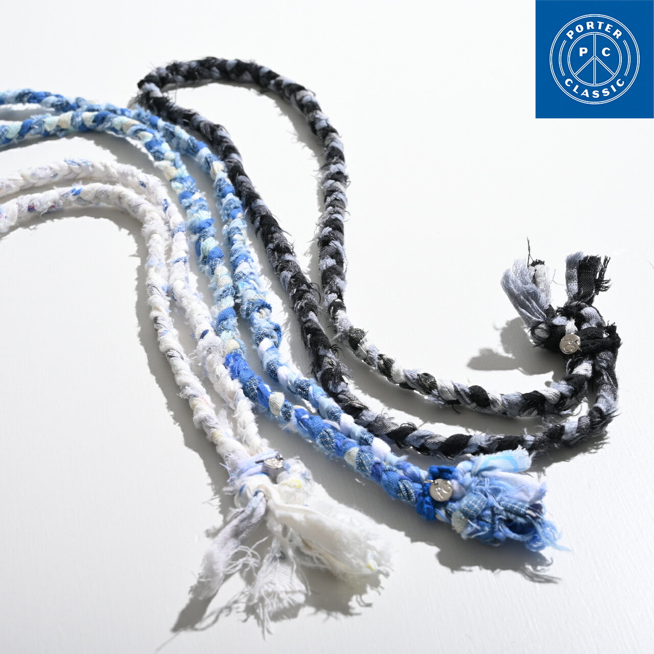 ヴィンテージのバンダナなどを解体したあと、一つ一つ手編みで作っていくのがこちらのハンドメイドネックレス。